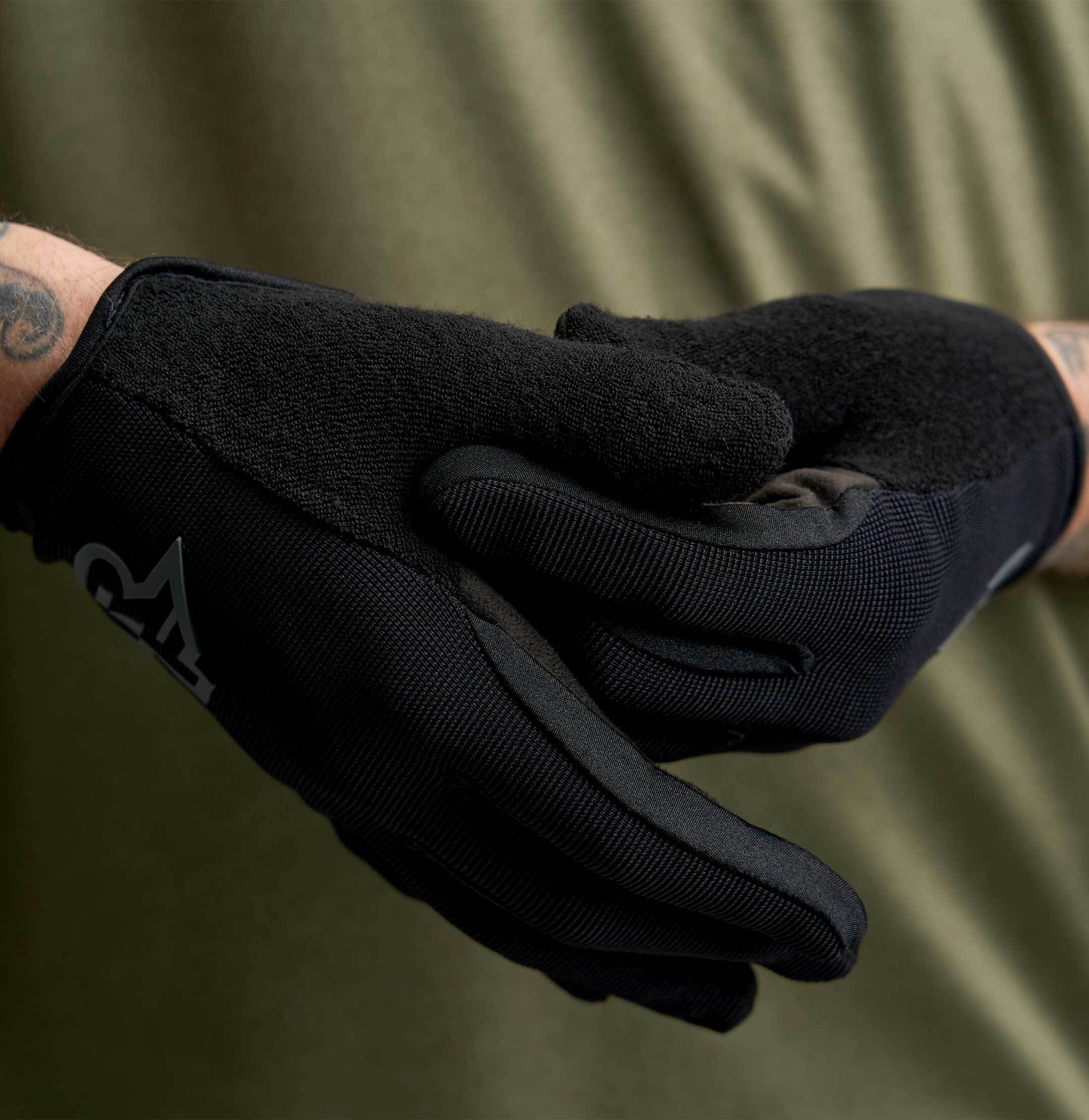 親指には吸水性の高いテリーパネルを配置。ライド中に顔やゴーグルの汗をサッと拭けます。