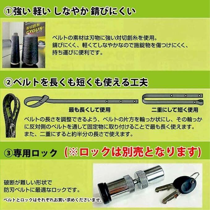 ベルトと相性の良い専用ロックを採用し、切断・こじ開け対策を強化。