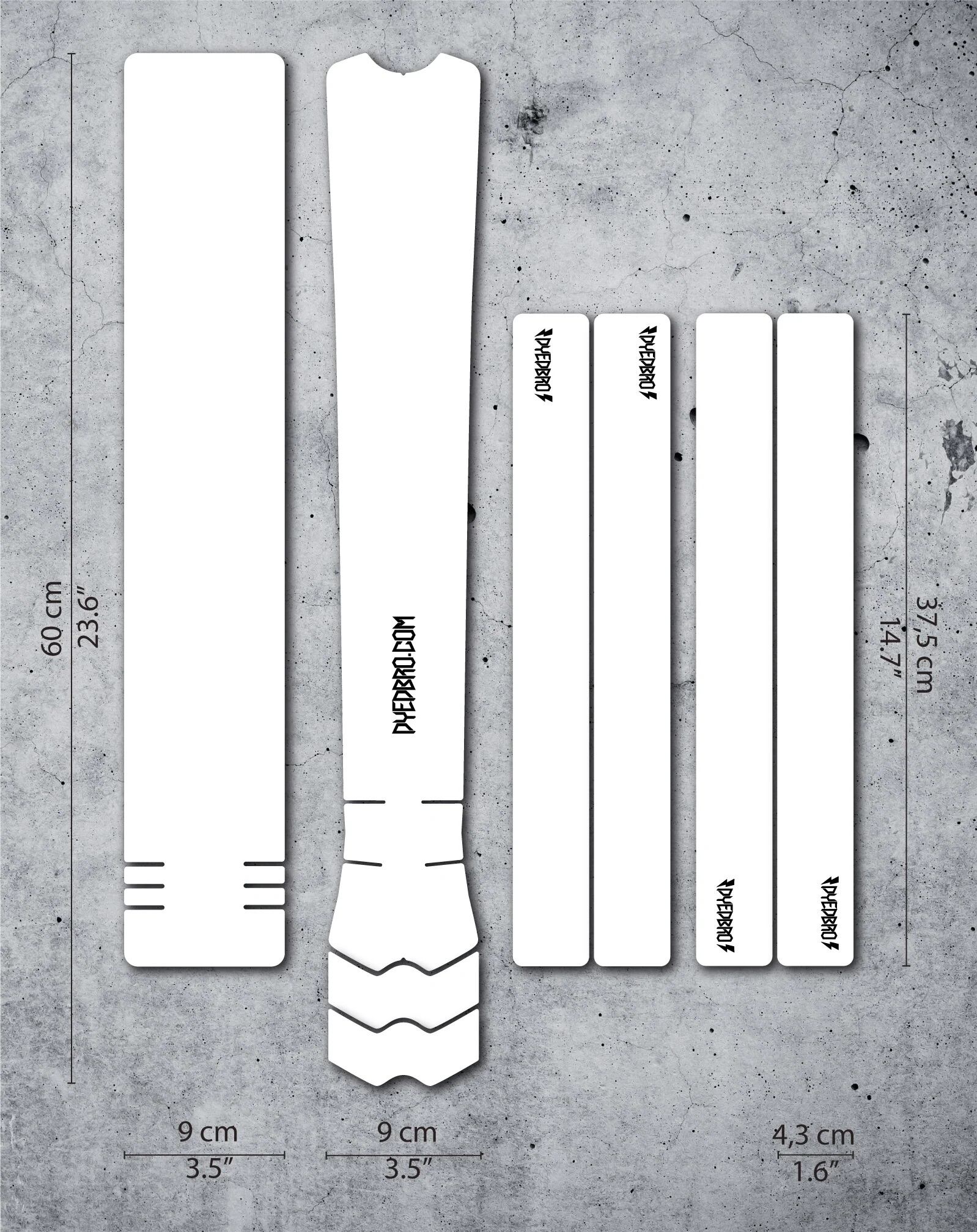 ラテックスインク印刷の施された、厚み300μmの高品質な保護ビニールシートを使用したプロテクションシートで、自転車の走行の際に生じる土砂・水しぶきへの耐性があります。フレームを擦り傷から守り最高の状態に保つのに役立ちます。さまざまなフレームに使用できるようにダイカットされた自転車1台分のセットです。